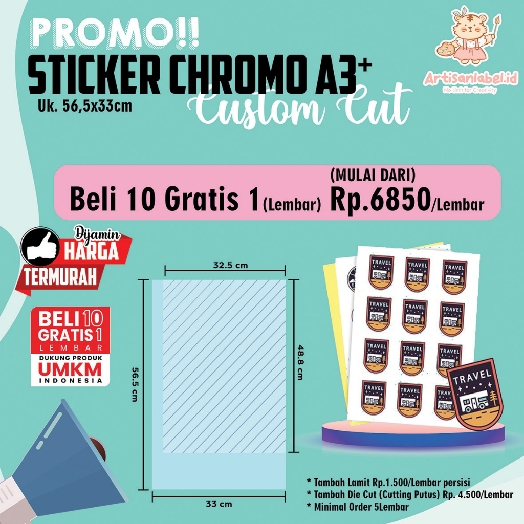 ☑️ Ukuran Bahan A3+ (32,5 x 56cm) | Area Cutting 30 x 52 cm | Area Cetak Aja 31,5 x 54 cm