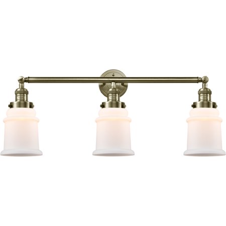 Antique Brass Tone Bathroom Vanity 30 Wide Matte White Glass Steel/Cast Brass Medium Base LED 3 Light Fixture