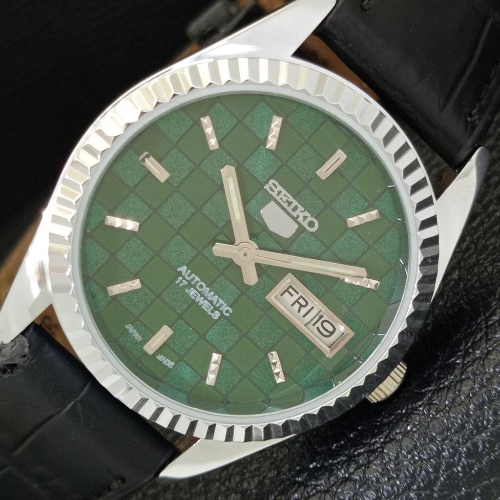 АВТОМАТИЧЕСКИЕ ВИНТАЖНЫЕ SEIKO 5 ВОССТАНОВЛЕННЫЕ ЯПОНИЯ МУЖСКИЕ ЧАСЫ С ЗЕЛЕНЫМ ЦИФЕРБЛАТОМ a440354-4 Sk-a440354