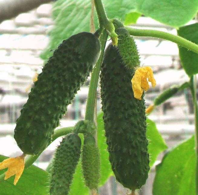 Артіст F1 Артіст F1 – новий ранній (40- 42 дні) партенокарпічний гібрид огірка. Рослина потужна з прекрасно розвиненою кореневою системою, формує по 6-8 плодів в одному вузлі. При вирощуванні на шпалері не утворює бічні пасинки. Рослина швидко регенерує після екстремальних стресових умов (дефіциту вологи, високої температури довкілля). Гібрид забезпечує стабільний урожай впродовж всього сезону вирощування. Плоди однорідні, вирівняні, великогорбкуваті, темно-зеленого забарвлення, не жовтіють, з маленькою насіннєвою камерою, без гіркоти, мають оптимальне співвідношення довжини до діаметру (3,3:1). Гібрид добре переносить умови недостатнього освітлення, що робить його ідеальним для вирощування в зимово-весняний період. Стійкий до оливкової плямистості, борошнистої роси і ВОМ. Придатний для маринування. Врожайність понад 20-25 кг/м2 корнішонів. призначення : С, З, М ранньостиглість : 40-46 співвідношення довжина:діаметр : 3,3-3,4:1