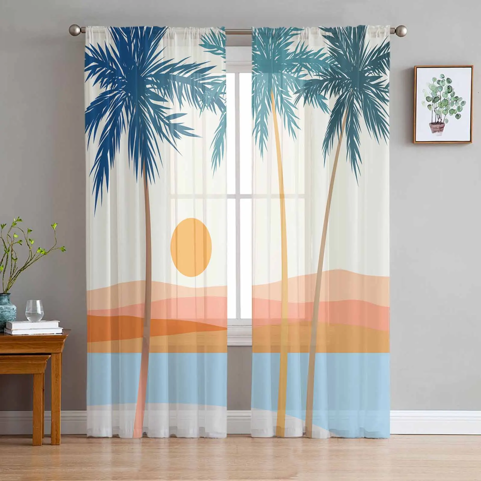 Абстрактные солнце кокосовое дерево в стиле бохо тюлевые шторы для гостиной спальни современные шифоновые прозрачные вуали для кухни Оконные Занавески