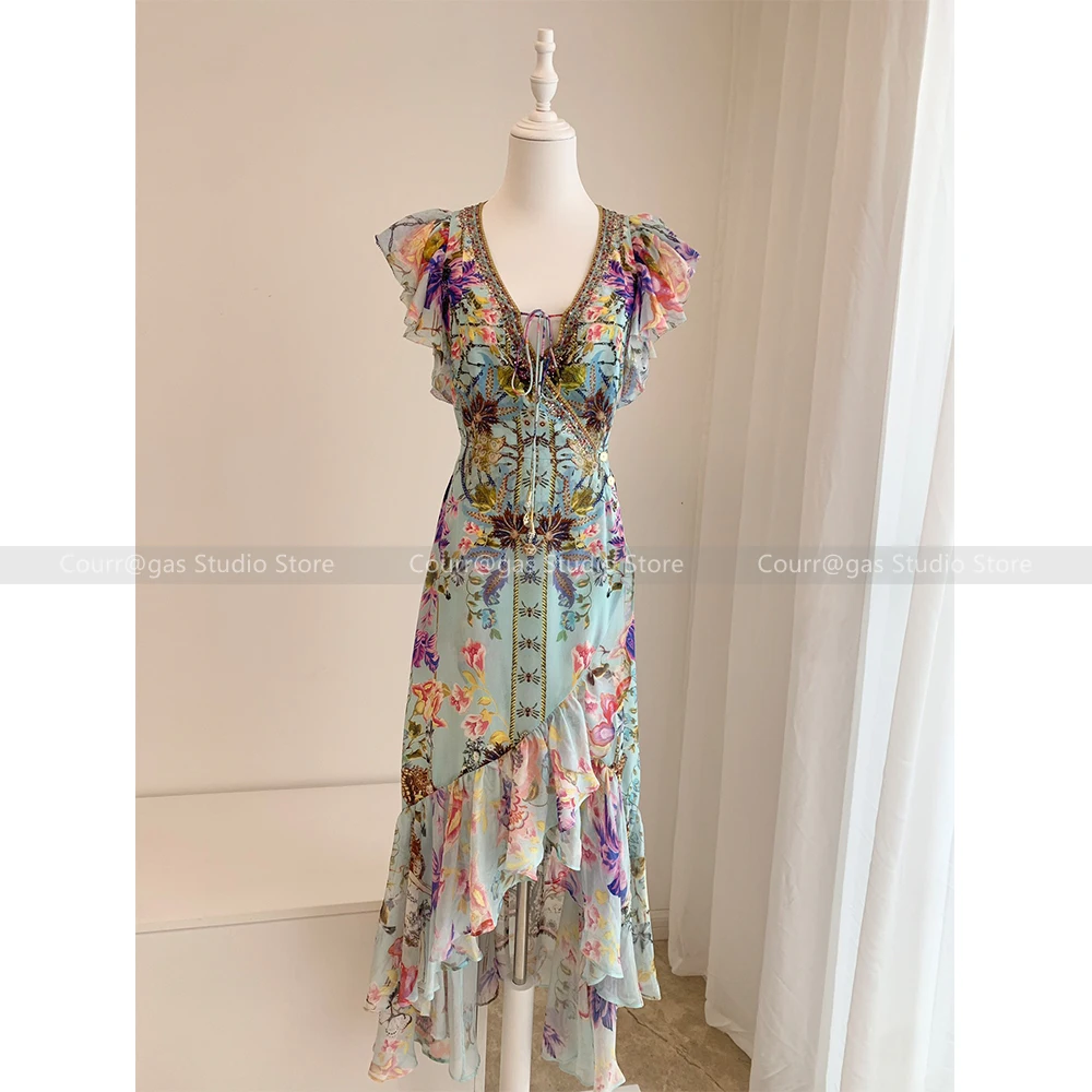 Австралийское Шелковое приталенное длинное платье без рукавов с V-образным вырезом в стиле курорта, Новинка весна-лето 2024