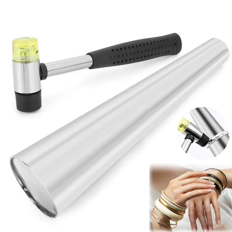 ABHB-Jewelry Making Tool Bracelet Mandrel Round Bracelet Mandrel Measuring Rubber Hammer Stainless Steel Jewel Making Tool