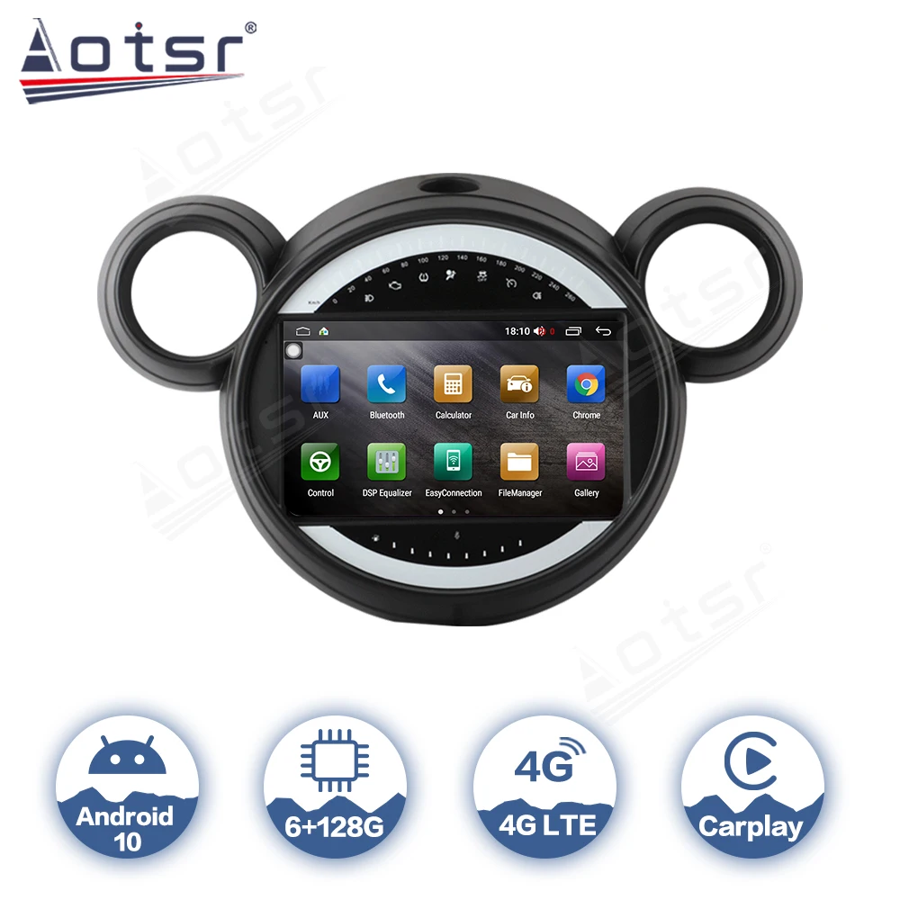 Автомагнитола для BMW Mini 2010-2016, Android 10, мультимедийный видеоплеер, автомобильная стереосистема с GPS-навигацией, Авторадио для Carplay 6 + 128G