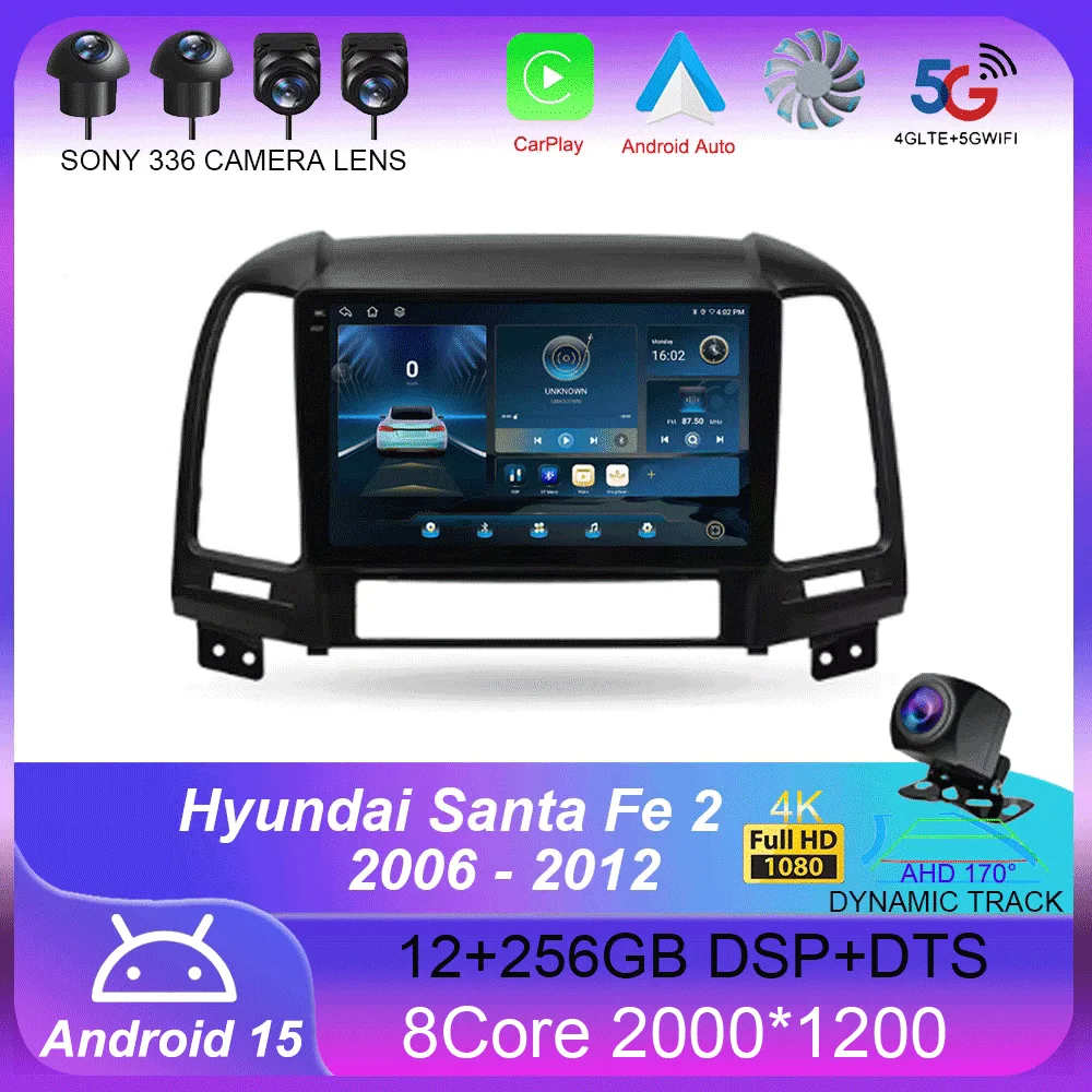 For Hyundai Santa Fe 2 2006 - 2012 Carplay Auto 4G+WIFI GPS Car Radio Navigation Multimedia Video Player Stereo BT Android 15