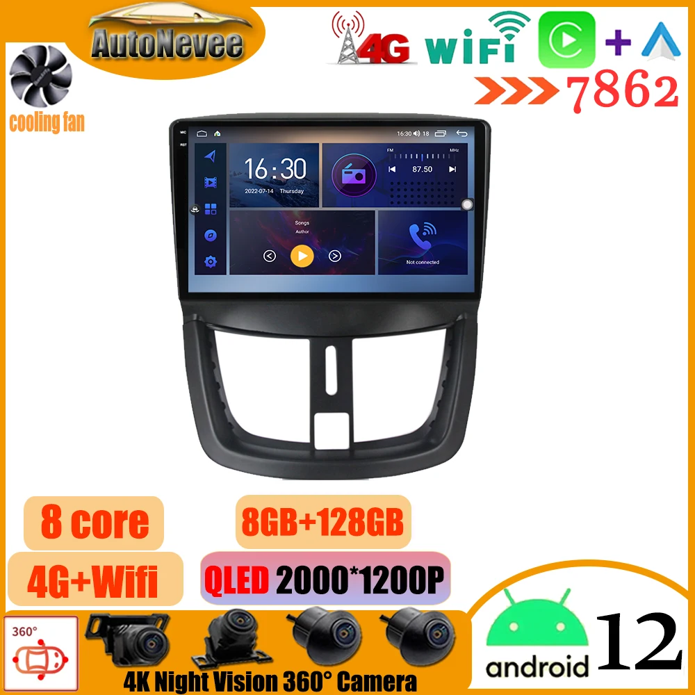 Автомагнитола для Peugeot, мультимедийный видеоплеер на Android 12 для Peugeot 207 CC 207CC 2006 2007 2008 2009 2010-2015, 2Din RDS