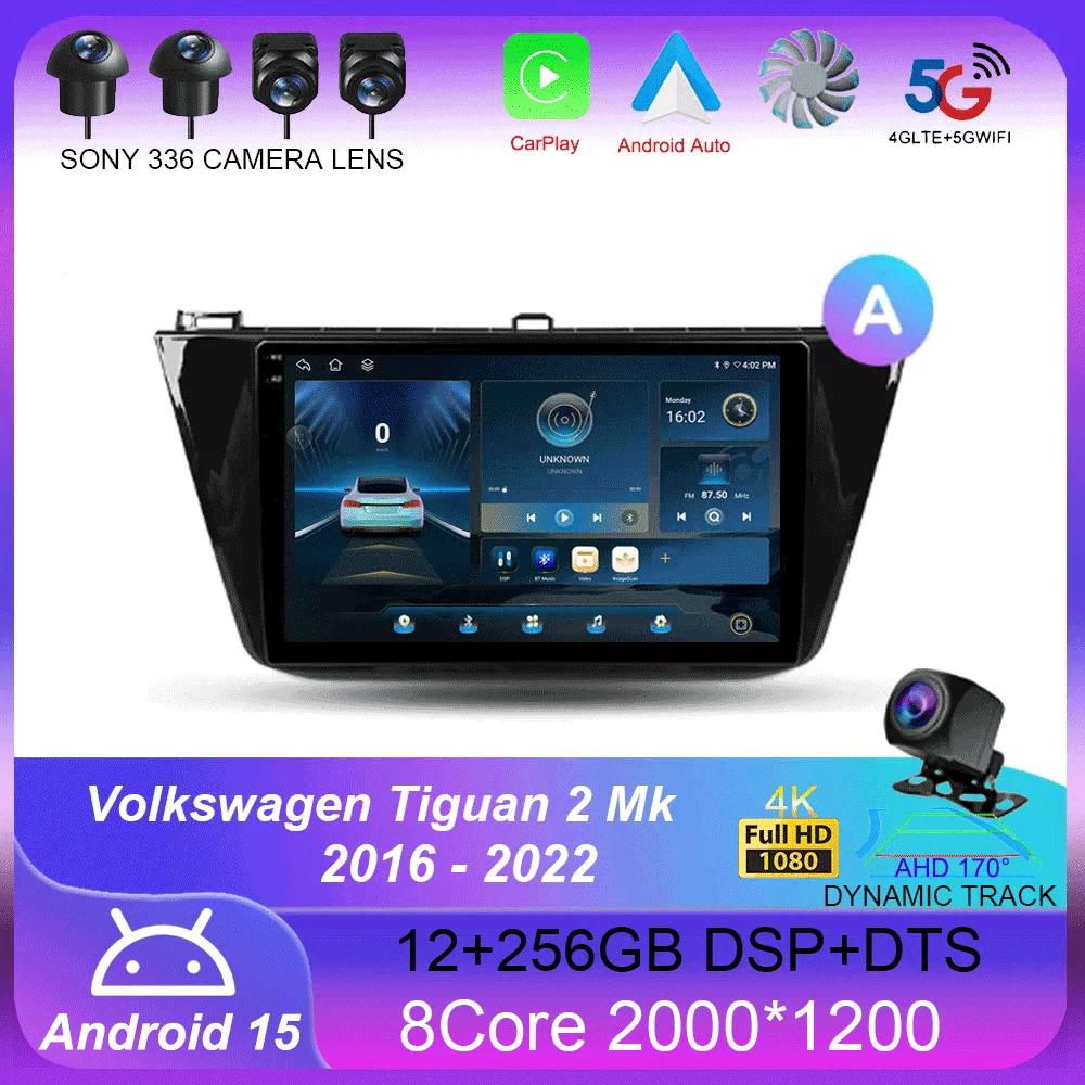 For Volkswagen Tiguan 2 Mk 2016 - 2022 Carplay Auto 4G+WIFI GPS Car Radio Navigation Multimedia Video Player Stereo BT Android15