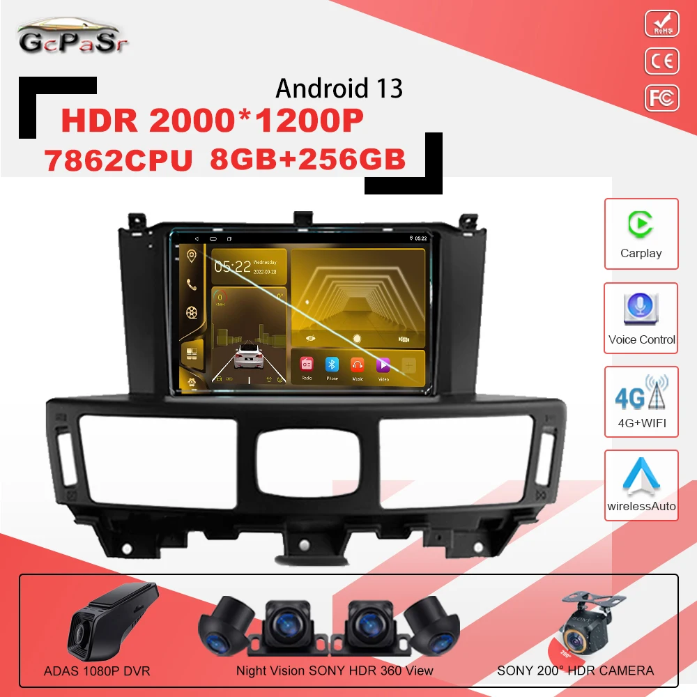 Автомагнитола на Android 13 с процессором 7862CPU для Infiniti Q70 1 2013 -2020, автомобильное радио, мультимедийный видеоплеер, навигация DSP, Wi-Fi, 5G DVD