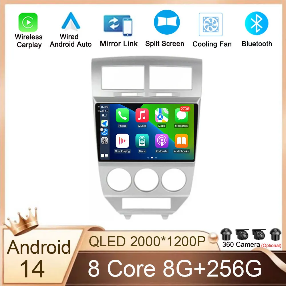 Автомагнитола на Android 14 для Dodge Caliber Jeep Compass 1 MK Patriot 2006 - 2010 мультимедийный видеоплеер GPS 4G + WIFI камера 360