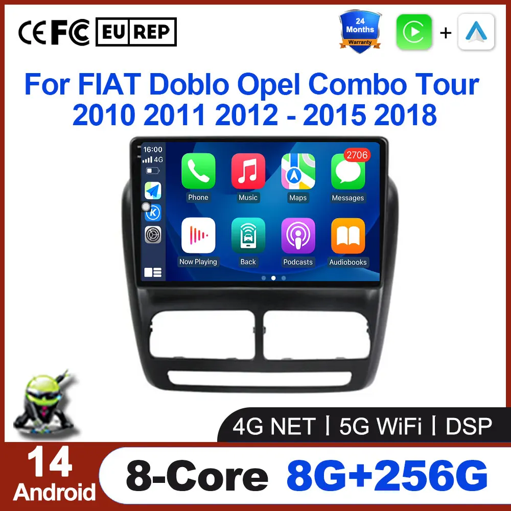 Автомагнитола на Android 14 с GPS-навигацией для FIAT Doblo Opel Combo Tour 2010 2011 2012 - 2015 2018 стерео видеоплеер Carplay Auto