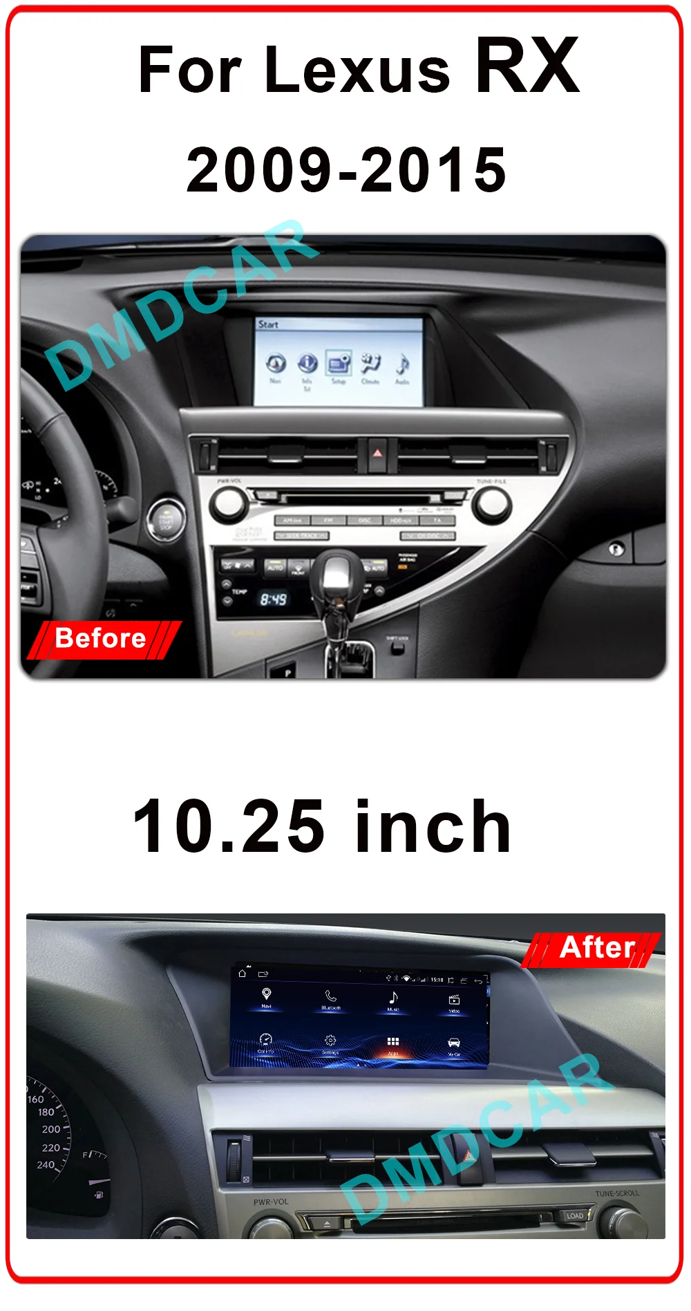 Автомагнитола 10,25 дюймов, Android 12, 8 +, 128 ГГц, мультимедийный видеоплеер, Авторадио для CarPlay, GPS-навигация для Lexus RX RX270, RX350, RX450H, 09-15