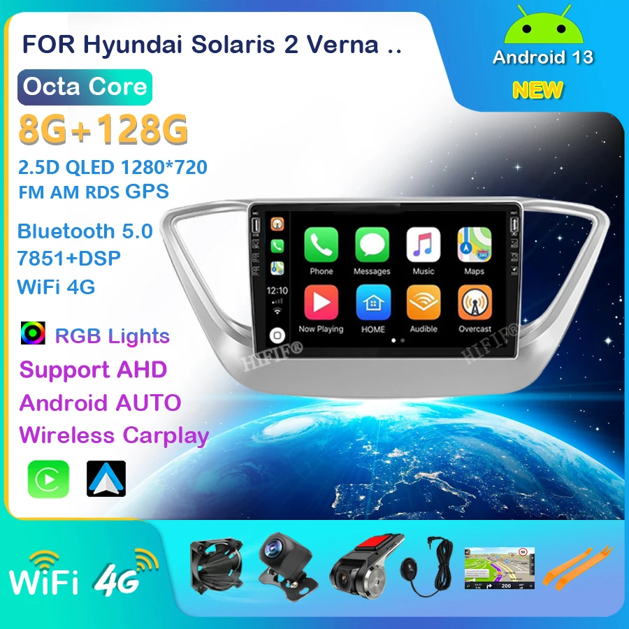 Автомагнитола 2 ГБ + 32 ГБ, Android 13, 4G, мультимедийный аудио плеер, GPS-навигация для Hyundai Solaris 2 Verna 2017, 2018, no 2 din