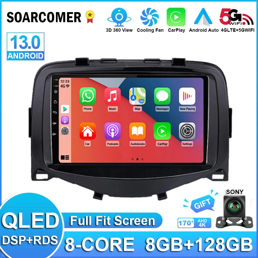 Автомагнитола 2DIN на Android 13 для Toyota Aygo, Peugeot 108, Citroen C1 2016-2020, Мультимедийный проигрыватель с GPS-навигацией и DSP DVD