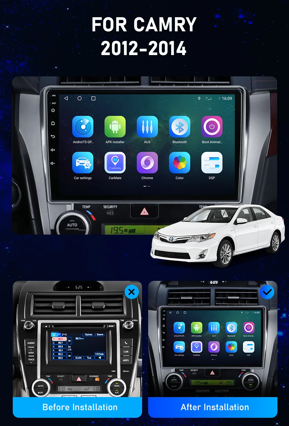 Автомагнитола 2DIN, 4G, Wi-Fi, DSP, Android 10,0, DVD, радио, аудио, мультимедийные плееры, GPS-навигация для Toyota camry 2012-2014, Авторадио carplay