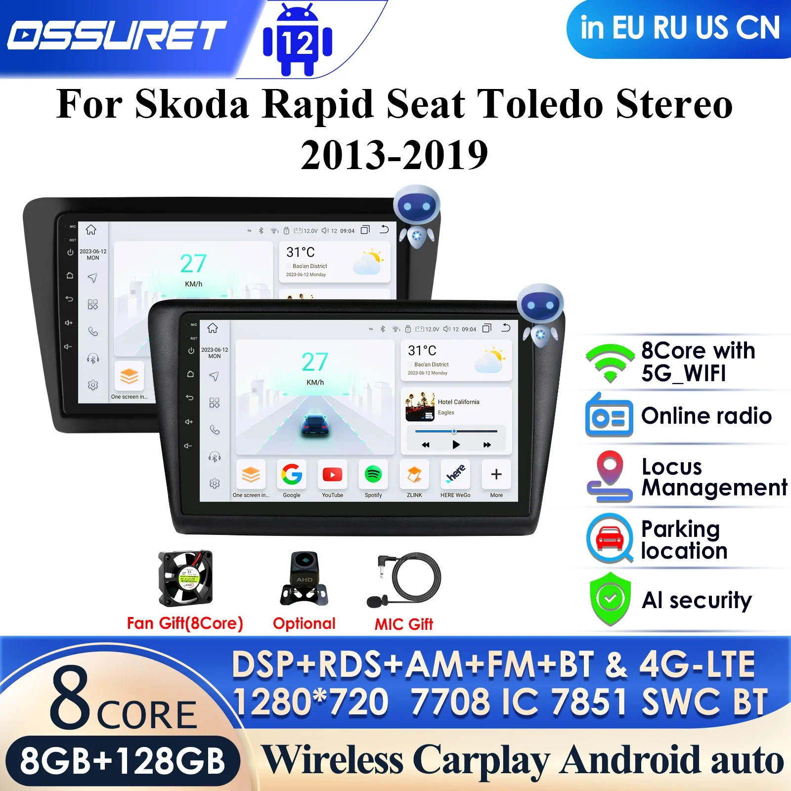 Автомагнитола 9 дюймов для Skoda Rapid, мультимедийный плеер на Android, с GPS, 4G, для Seat Toledo, типоразмер 2DIN
