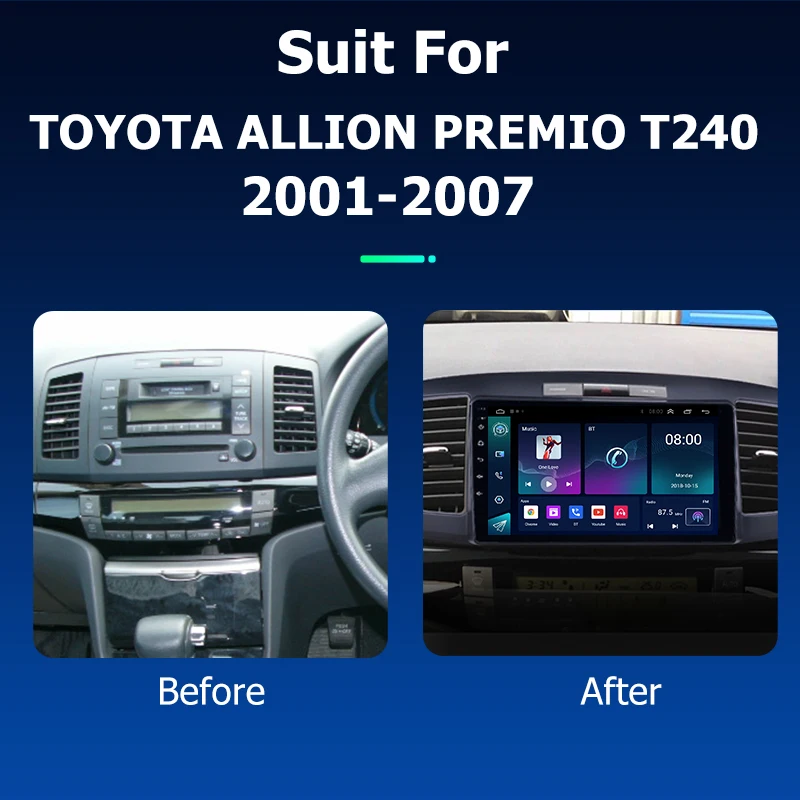 Автомагнитола 9 дюймов, Android 12,0, мультимедийный проигрыватель с GPS-навигацией и стереоголовкой для TOYOTA ALLION PREMIO T240 2001 2007