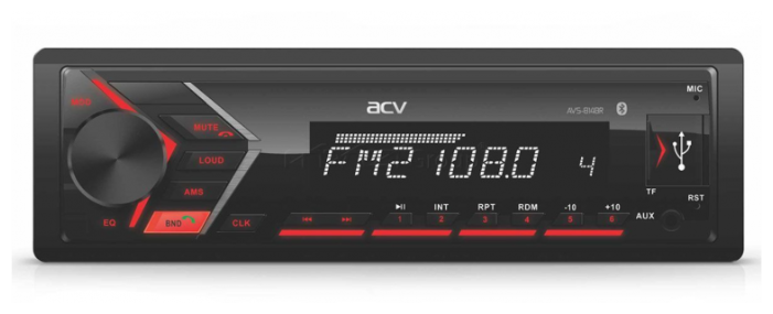 Автомагнитола ACV AVS-814BR, 1 DIN, 4x50 Вт, USB, черный, AVS-814BR