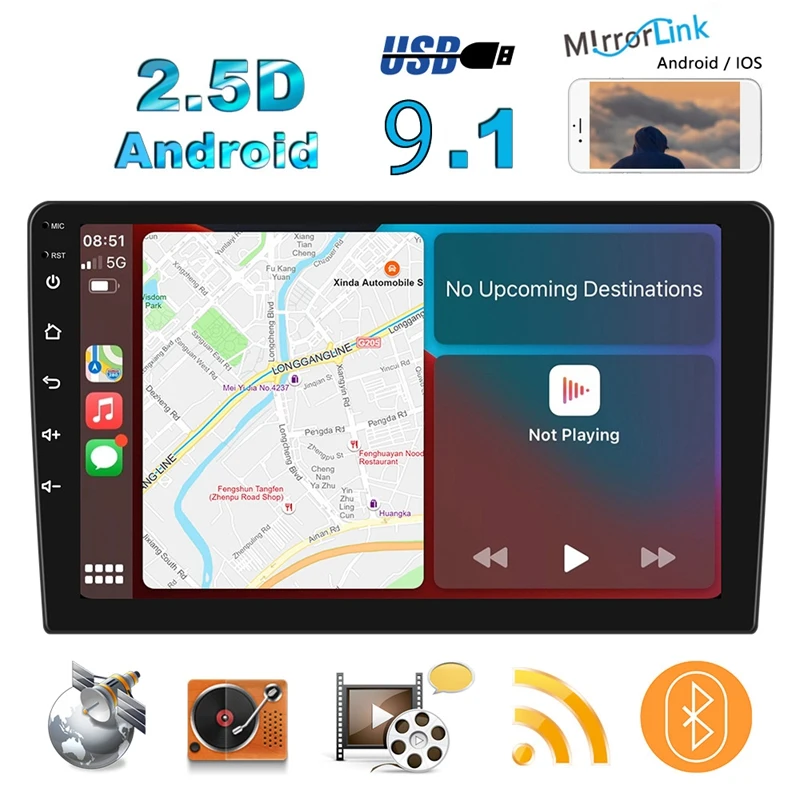 Автомагнитола CarPlay, 2 Din, 9 дюймов, HD, MP5, мультимедийный плеер для Android 10,1, радио, GPS-навигация, Wi-Fi, Bluetooth