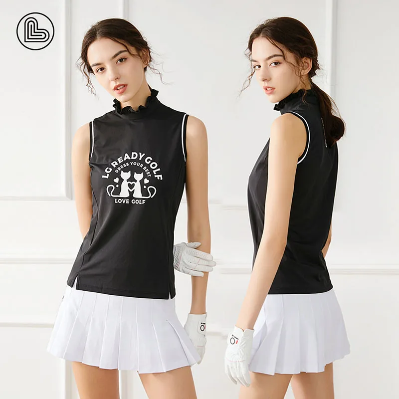 Love Golf Summer Ice Silk Fast Dry Tops Female High Elastic Sleeveless Golf T-shirt Ruffle Collar Sports Shirt Lady Golf Apparel