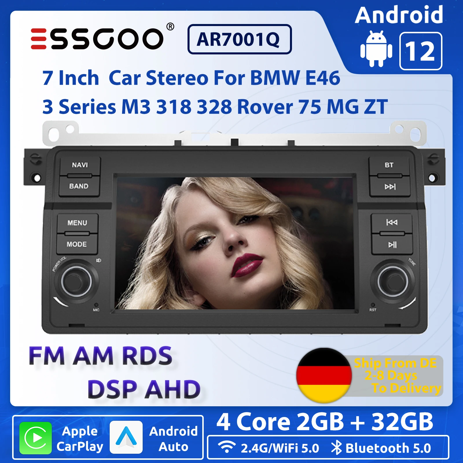Автомагнитола ESSGOO CarPlay для BMW E46 318i 320i M3 3, мультимедийный плеер с GPS-навигацией, DPS MirrorLink, Авторадио