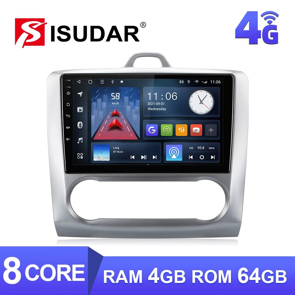 Автомагнитола ISUDAR T68 IPS Android 10 для Ford Focus 2 Mk 2 2004-2011 GPS-навигация Мультимедиа 8 ядер ОЗУ 4G автовоспроизведение No 2din