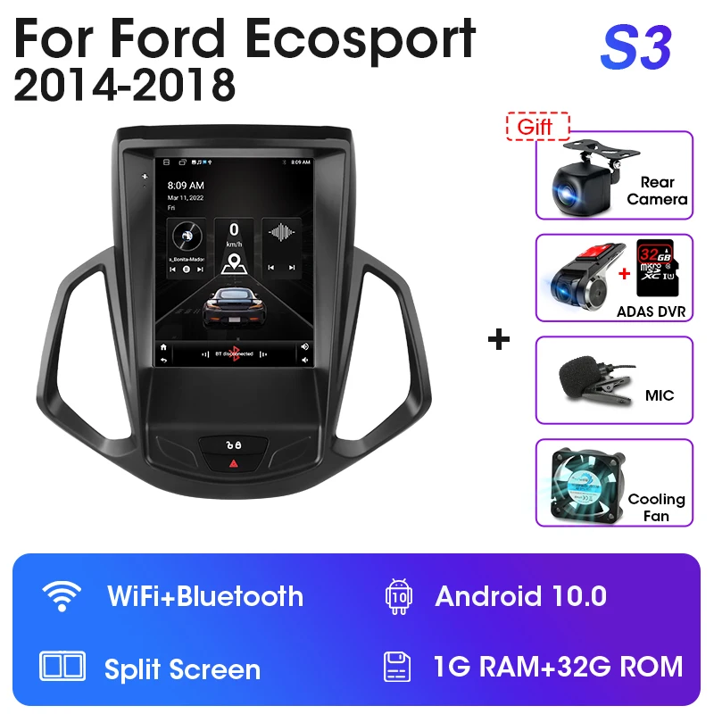 Автомагнитола JMCQ для Ford EcoSport 9,7-2014, мультимедийный видеоплеер с GPS-навигацией, Android, 4G, 2Din, Android 12