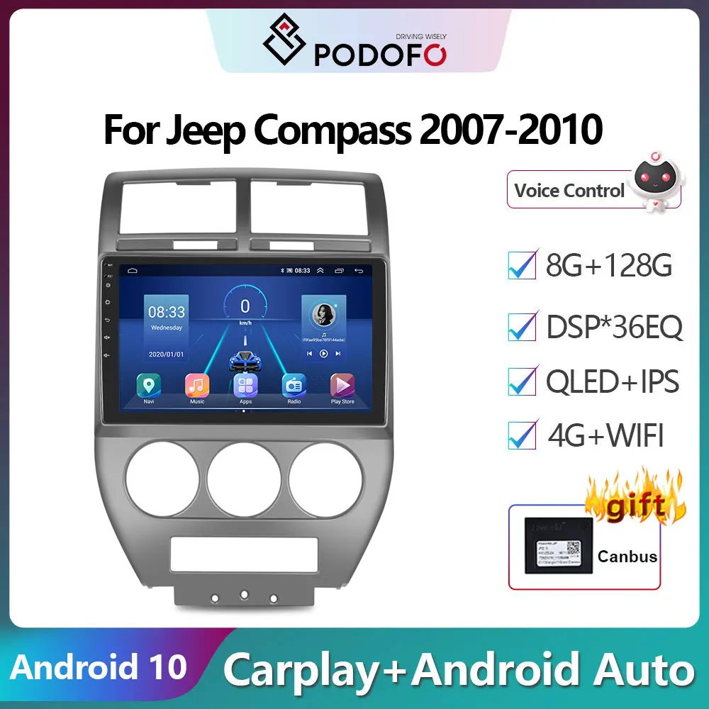 Автомагнитола Podofo, мультимедийный видеоплеер с GPS-навигацией для Jeep Compass 2007-2010, 2din, 4G, Wi-Fi