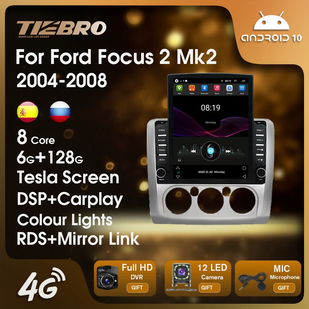 Автомагнитола Tesla Style, 2 Din, Android 10, Wi-Fi, для Ford Focus 2 Mk2 2004-2008, автомобильный мультимедийный видеоплеер, головное устройство с GPS-навигацией