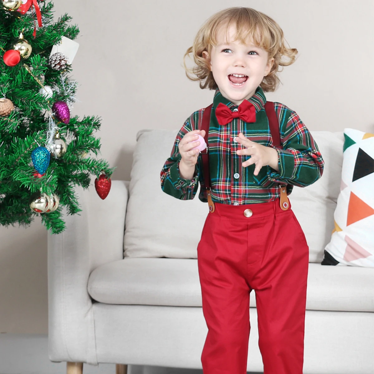 Комплект одежды для маленьких мальчиков, Осень-зима, детская официальная рубашка + брюки на подтяжках, костюм из 2 предметов, Детские Рождественские наряды