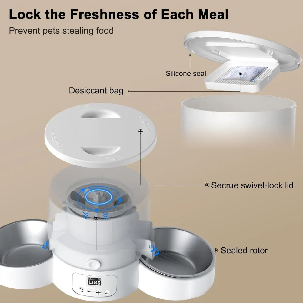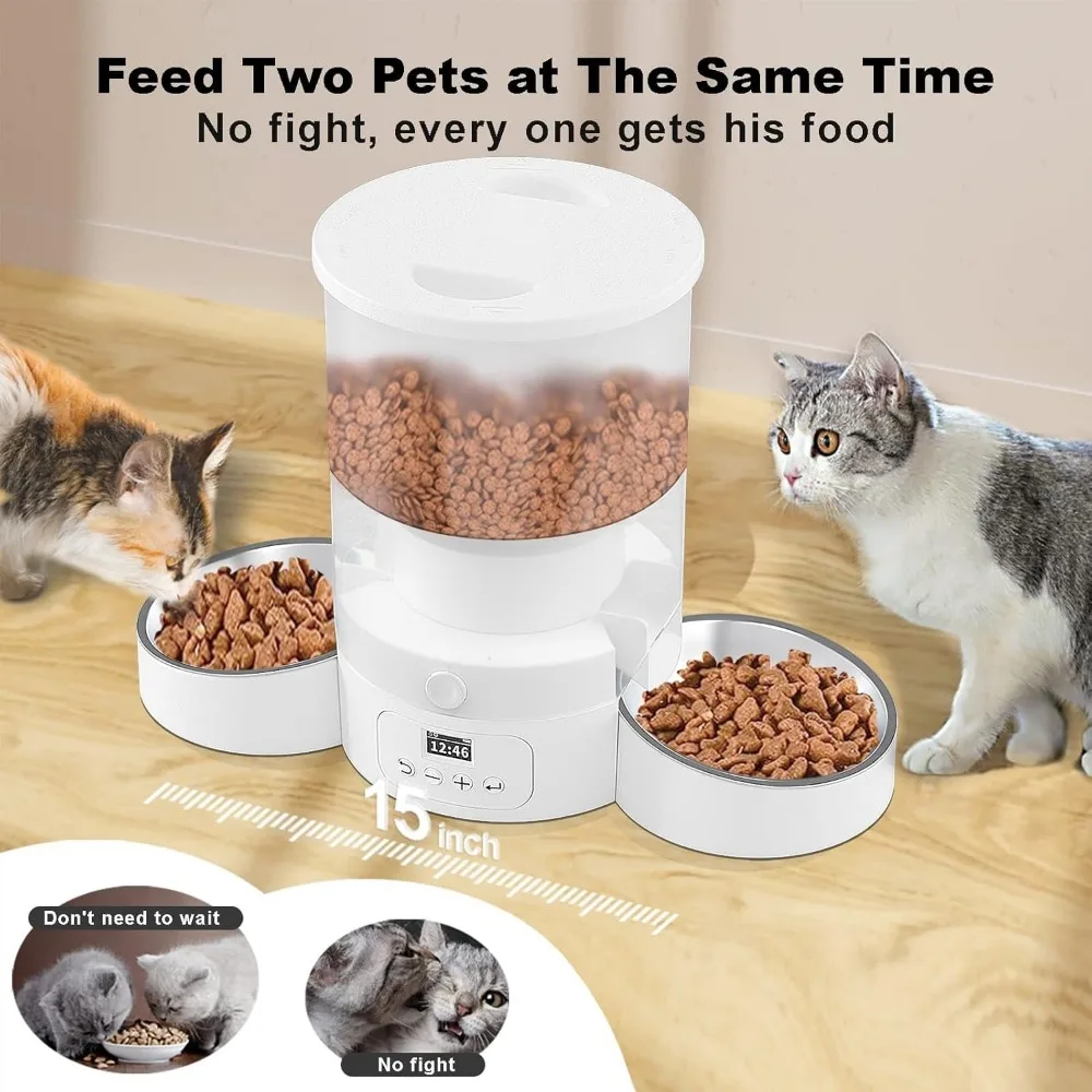 Автоматическая кормушка для кошки для 2 кошек, 3 л, диспенсер для кошек, автоматическая кормушка для кошек с 2 нержавеющими чашами