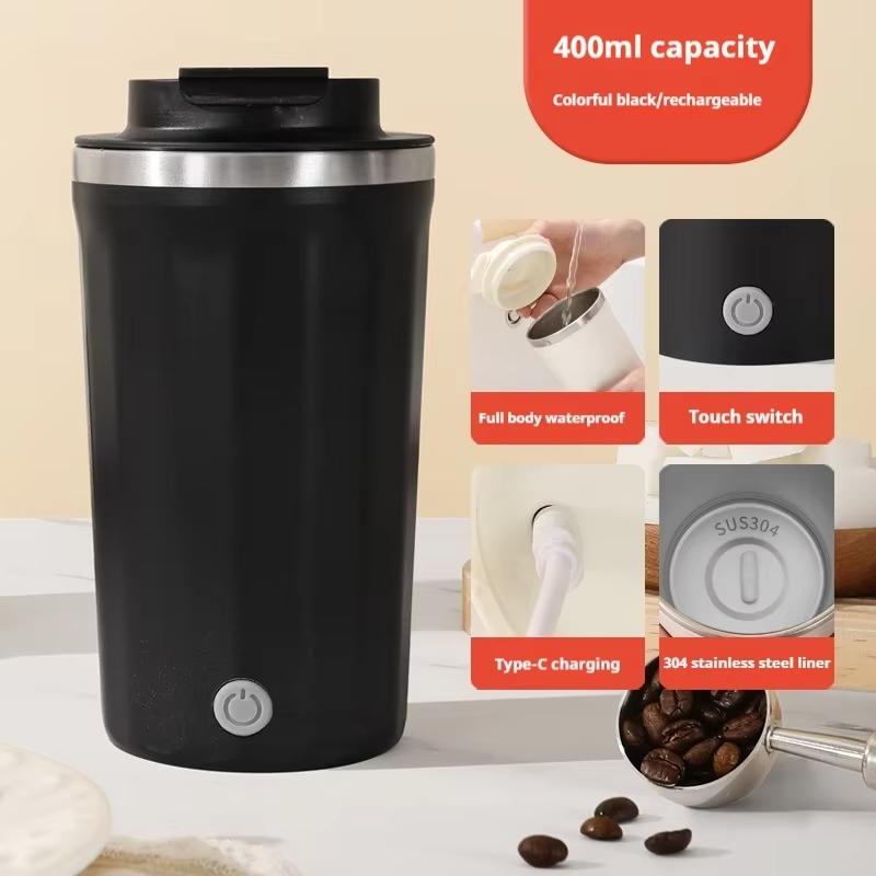 Автоматическая кружка для смешивания Перезаряжаемая ленивая кружка Портативная электрическая магнитная кружка для вращения Кофейная кружка Кружка для смешивания протеинового порошка 400ml чёрный