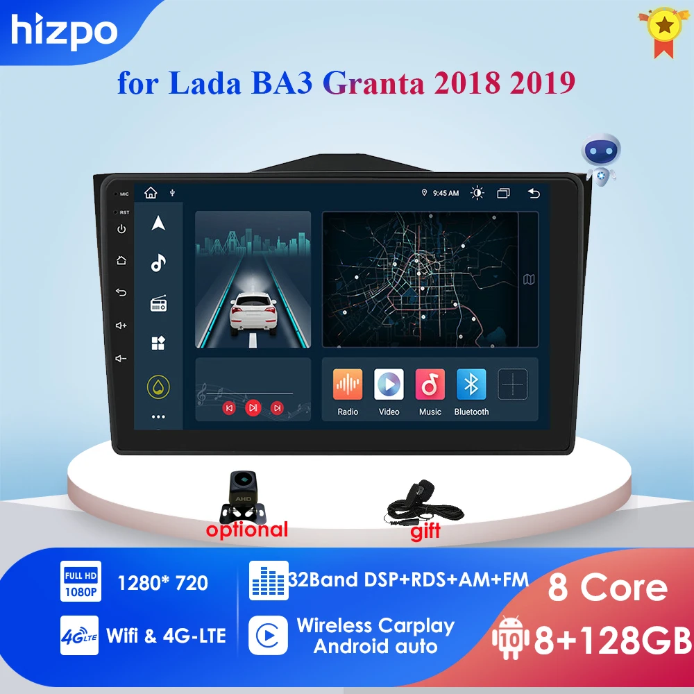 Автомобильная Автомагнитола 2DIN AI Voice, 3 ГБ + 32 ГБ, 9 дюймов, для Lada BA3 Granta 2018 2019, мультимедийная навигация, GPS, Wi-Fi, RDS, OBD2, DAB + SWC
