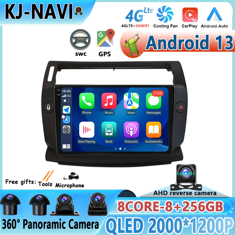 Автомобильная Мультимедийная система на Android 13 для Citroen C4, Автомобильная Мультимедийная стерео-система с DVD-проигрывателем для автомобиля с триумфальтом четыре 2004-2014, типоразмер 2DIN