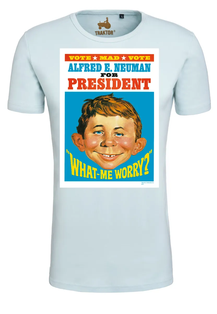 Футболка Logoshirt "Безумный - Альфред Нойман в президенте", с классным принтом, голубой