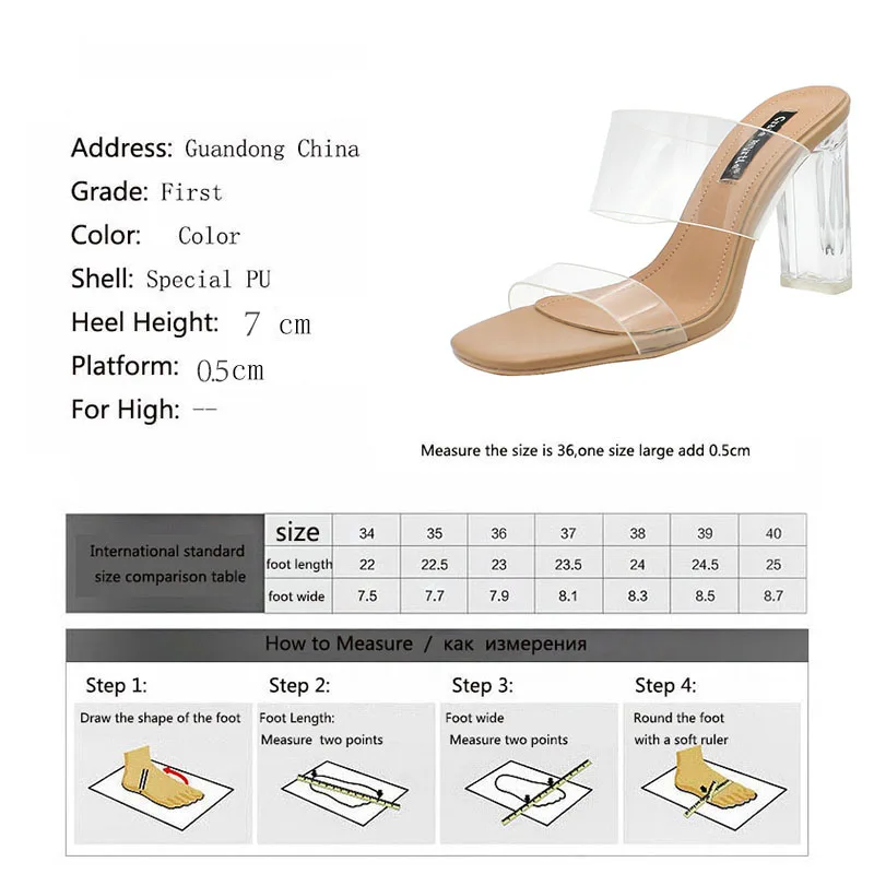 Meriahzheng 7CM 2020 Summer Fashion Thick Heel Transparent PVC Slippers Casual Wear Open Toe Crystal High Heel Women's Shoes TWS
