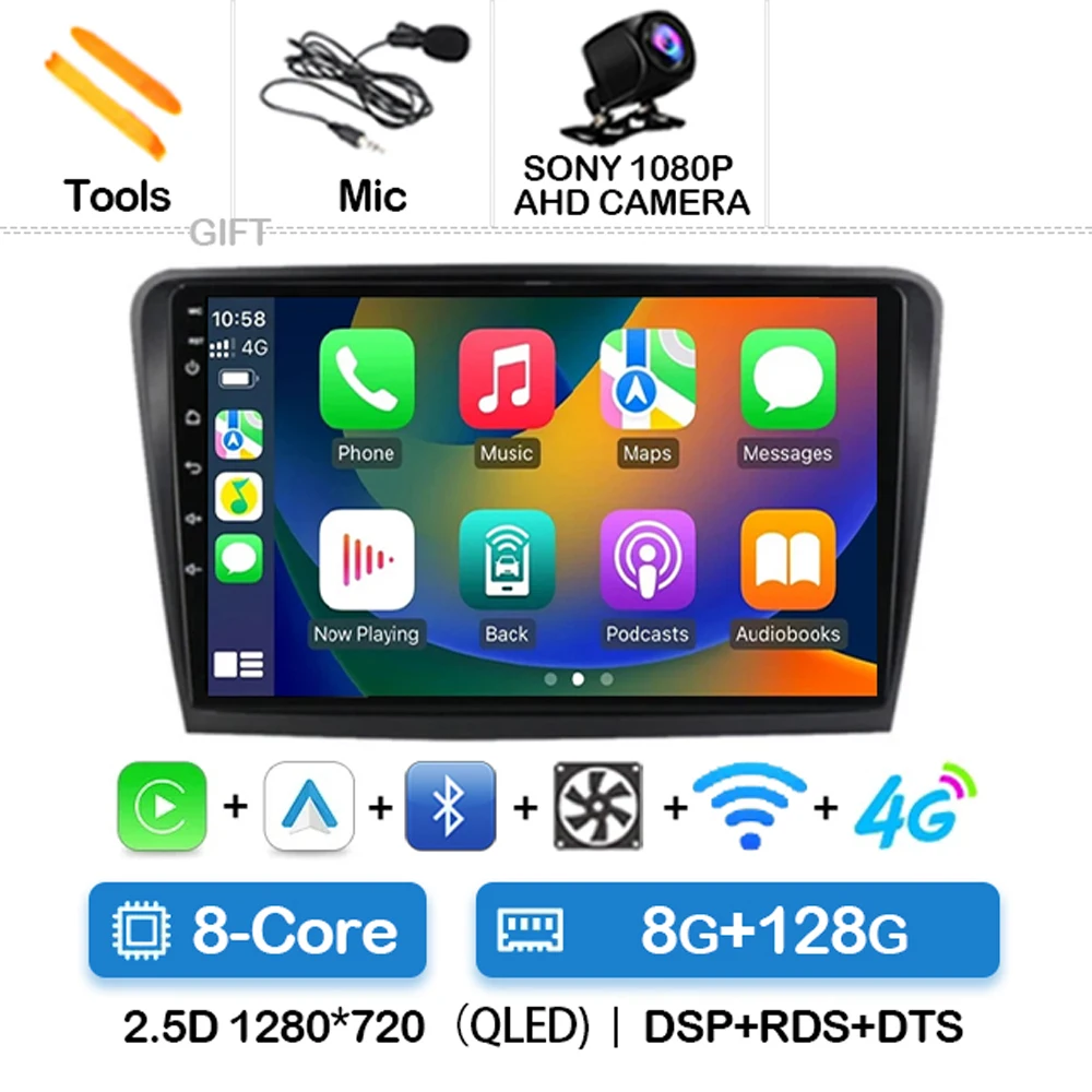 Автомобильная магнитола на Android 14 для Skoda Superb 2 B6 2008-2015, беспроводная стереосистема Carplay, автомобильный навигатор, GPS, мультимедийный видеоплеер, Wi-Fi, 4G, DSP