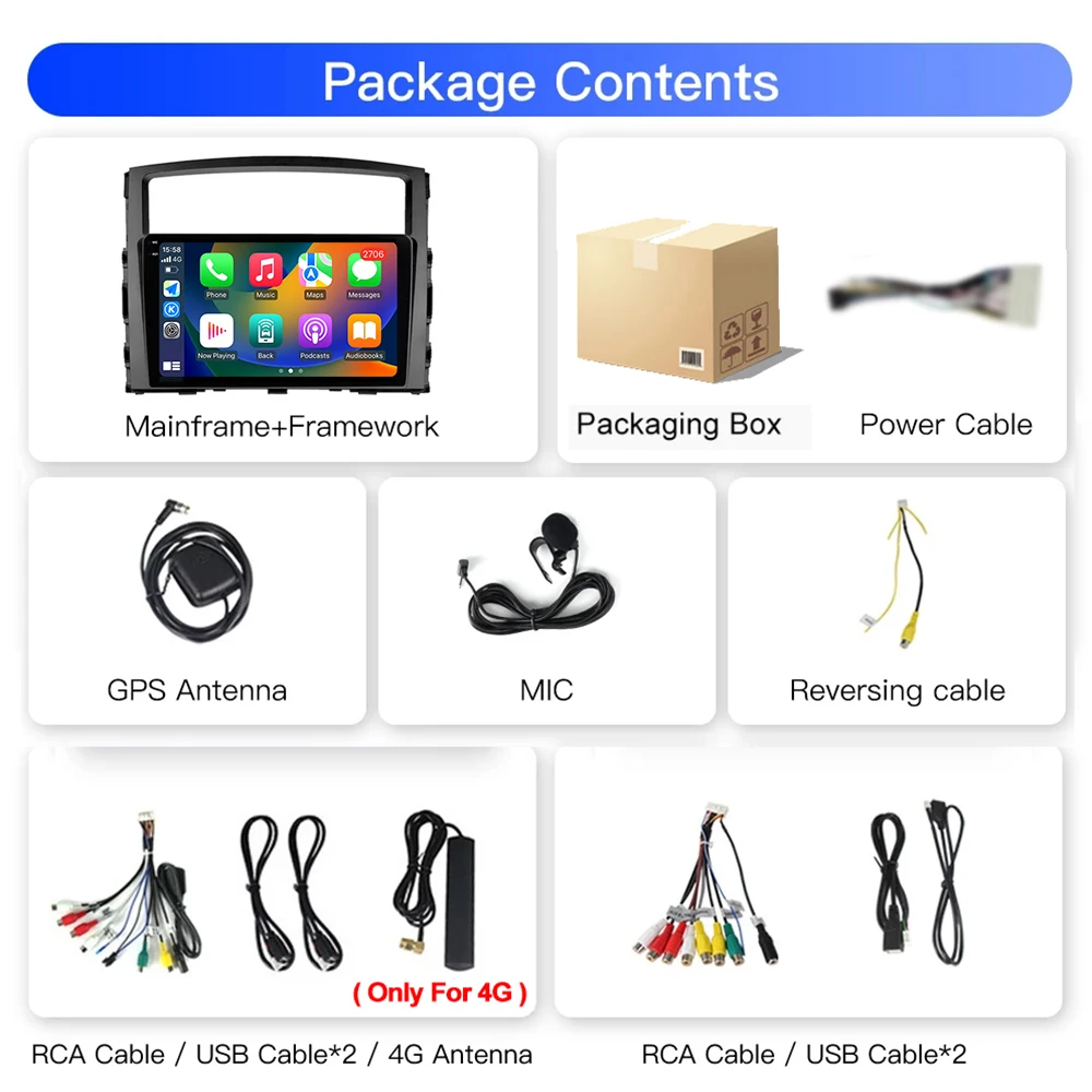 Автомобильная магнитола 10 ядер, мультимедийный видеоплеер на Android 14, с Wi-Fi, QLED, 2K, для Mitsubishi Pajero 4, V80, V90, 2006-2014, с GPS