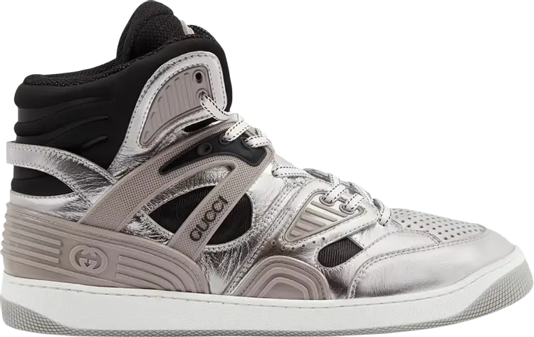 Кроссовки Gucci Basket High Silver Black, серебряный, Серый, Кроссовки Gucci Basket High Silver Black, серебряный