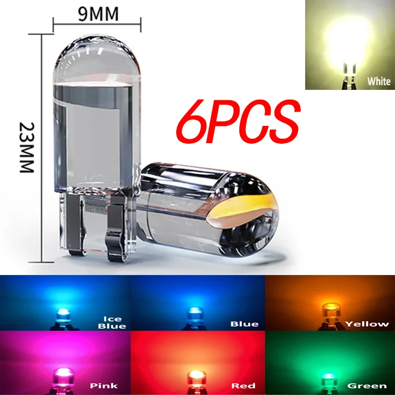 Автомобильная светодиодная лампа W5W T10 светильник COB Glass 6000K для салона автомобиля, лампа для номерного знака, Купольные лампы для чтения, лампа DRL 12 В, универсальная