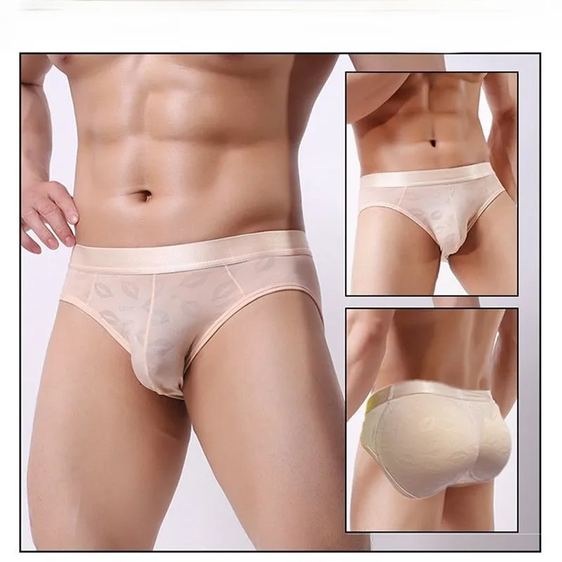 Мужские брюки с губчатым ковриком, подтягивающие бедра, сексуальное нижнее белье со средней талией, шелковистые эластичные удобные трусы для фитнеса