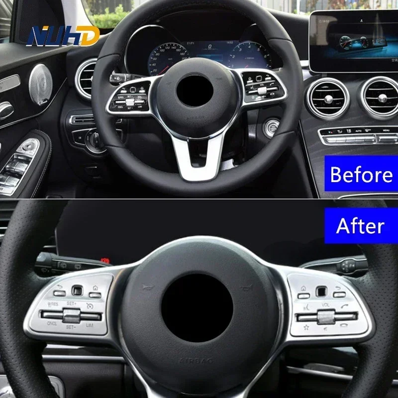 For Mercedes-Benz W177 W205 W213 W247 W167 Interior Protective Cover Accessories Car Steering Wheel Buttons Frame Trim Stickers