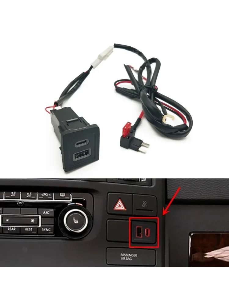 Автомобильное зарядное устройство, адаптер для зарядки телефона, розетка, USB-зарядное устройство PD QC3.0, автомобильное зарядное устройство, подходит для Volkswagen Multivan T5 2008-2015