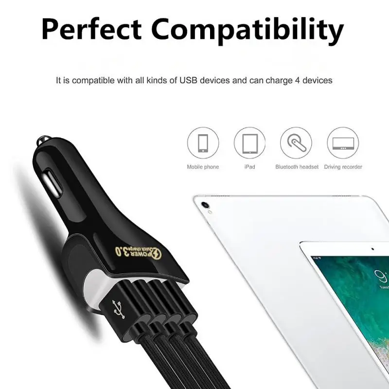 Автомобильное зарядное устройство с 4 портами, адаптер QC 3,0, зарядное устройство USB, адаптер для быстрой зарядки для телефонов IPhone 13, 12, 11 Max, Samsung