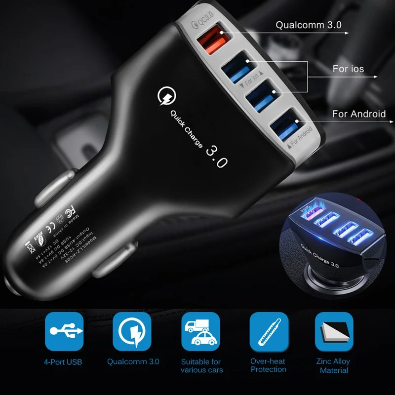 Автомобильное зарядное устройство с 4 USB-портами, многофункциональный адаптер для быстрой зарядки, автомобильное зарядное устройство для телефона