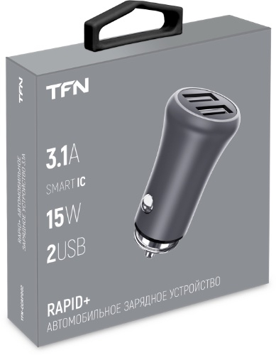 Автомобильное зарядное устройство TFN RAPID, 2xUSB, 3.1А, серый (CCRPD02), RAPID