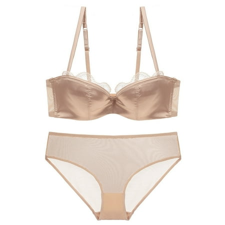 Fabiurt Women s Bra Women s Lace Smooth Deep V Underwear Soft Satin Underwear Set Khaki