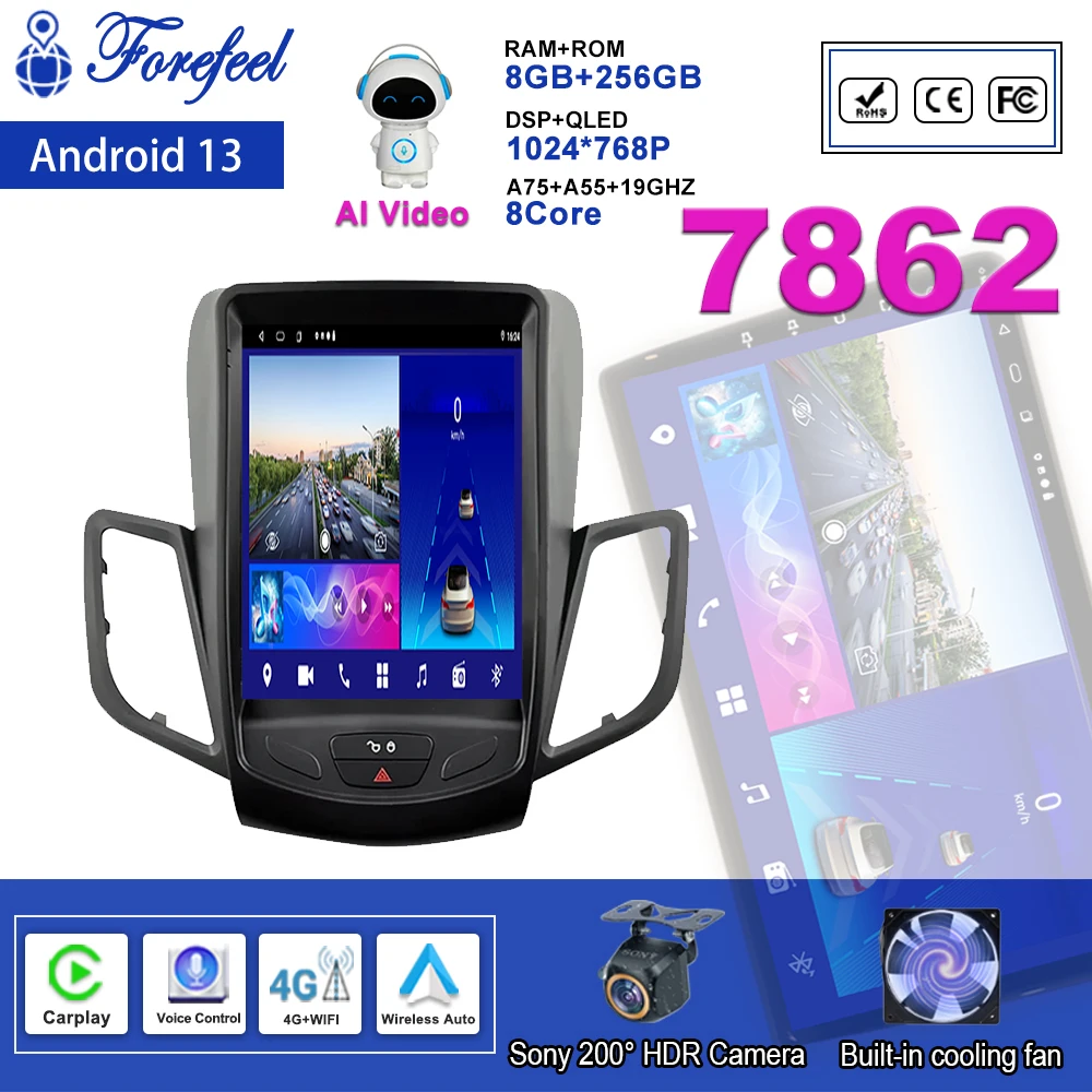 Auto Radio Android 13 For Ford Fiesta MK7 2009 - 2016 Multimedia Head Unit Navigation GPS Player Car Stereo Carplay Screen DVD