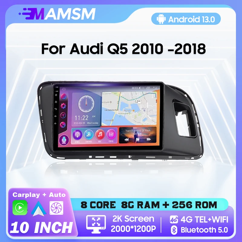 Автомобильное радио MAMSM Android 13 2K QLED для Audi Q5 2010 -2018 видео мультимедийный Bluetooth плеер навигация 4G GPS Carplay стерео