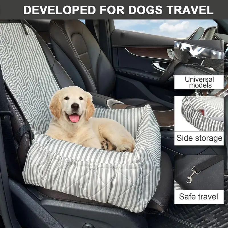Автомобильное сиденье для собак в полоску, переднее сиденье для питомцев, универсальный бустер с боковыми карманами для маленьких и средних собак