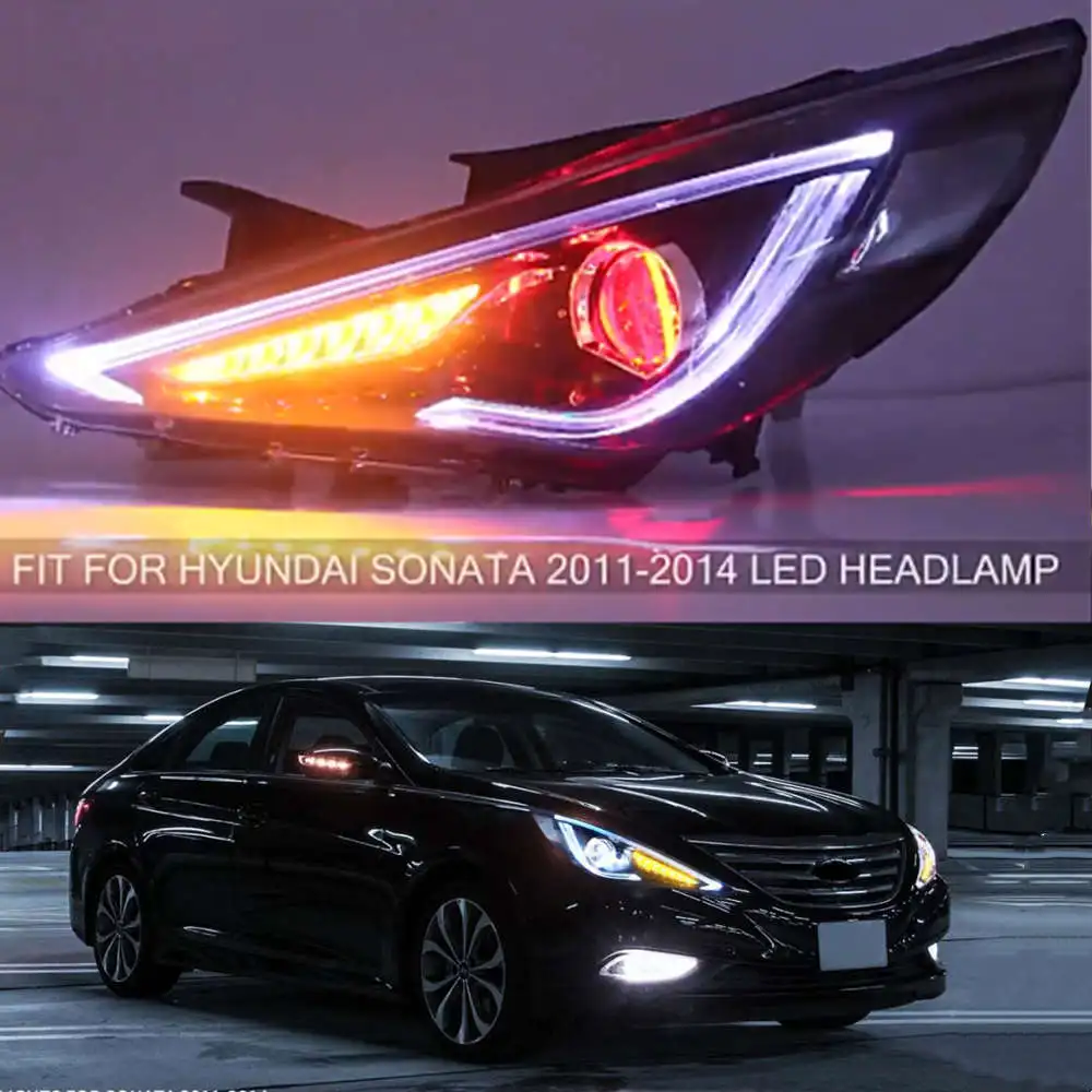 Автомобильные аксессуары светодиодные фары Противотуманные стоп-сигналы в сборе для Hyundai SONATA 2011-2014 DRL сигнал поворота динамическая передня...